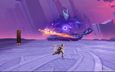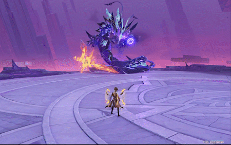 boss拥有两种类型的攻击效果,一种为火元素(红色攻击),一种为深渊类型攻击(紫色攻击)