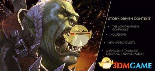 入侵事件再开——类似于军团入侵事件,联盟和部落将会入侵对方的一个区域,激活入侵事件,暂时取代该地图的其他世界任务,开启新的任务目标。