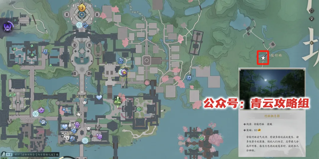 12张地图除去空桑山外,都有1个特殊的百景游不在地图上显示,需要在特定的时间前往解锁!每张地图全解锁领50云赏点,一共是600点。
