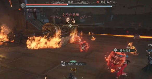 6、燃烧之刃:boss血量低于20%时技能读条,此时boss攻击会提前引爆炸药桶,只要确保危险桶数量不过多,就不用过于担心。