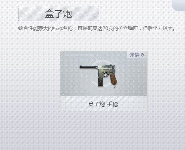 盒子炮是荒野行动plus手枪中的一员,曾经广泛用于抗战。那么游戏里该武器有什么特点呢?怎么使用?小编下面就为大家带来荒野行动plus盒子炮介绍,一起来看看吧。