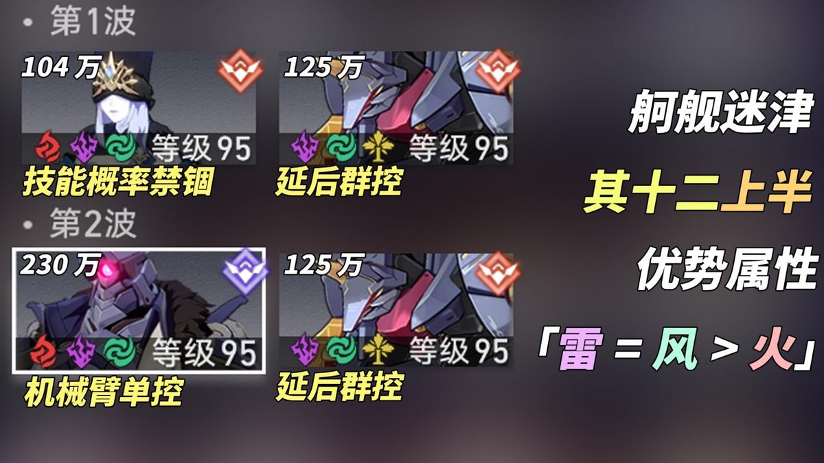 【12层上半】优势属性「雷=风>火」,敌方无特殊抗性。
