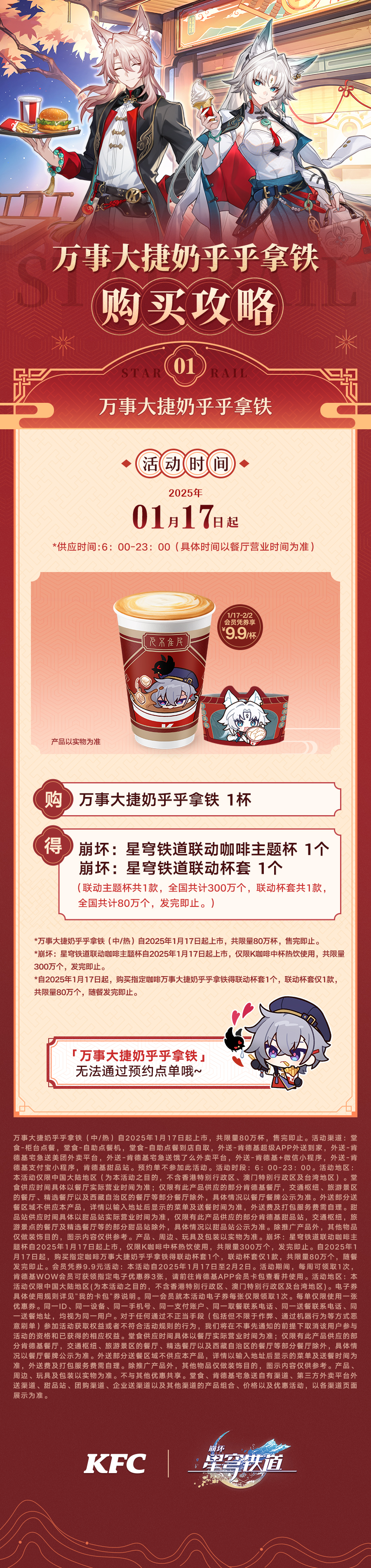 亲爱的开拓者,《崩坏:星穹铁道》× @肯德基联动将于1月17日正式开启。