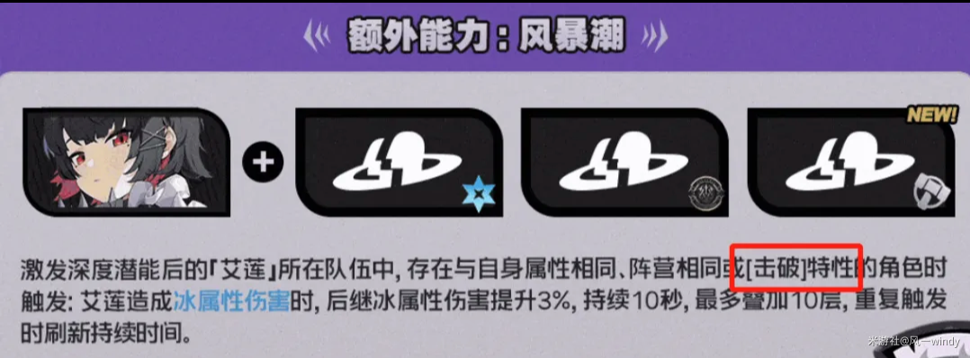 最后是艾莲在数值方面的提升,此前艾莲的核心被动只能为蓄力剪击和冰附魔普攻施加100%暴伤加成,而在增强过后,艾莲的核心被动还能对连携技、终结技以及普攻的[霜锋]和[冰刃浪]生效,大幅提高了核心被动的覆盖率,强化明显。