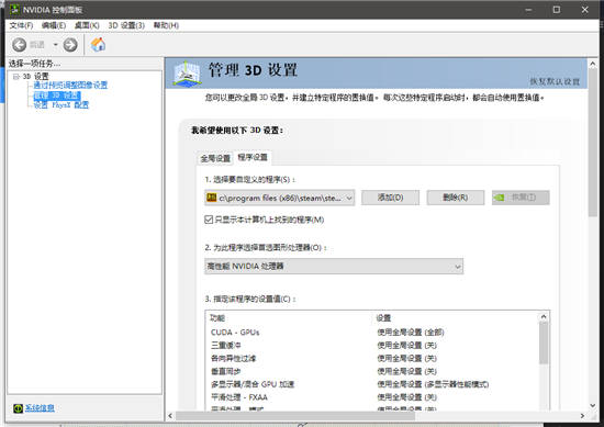接下来小伙伴们在左面选择管理3D设置 ,选择程序设置 ,再按添加。