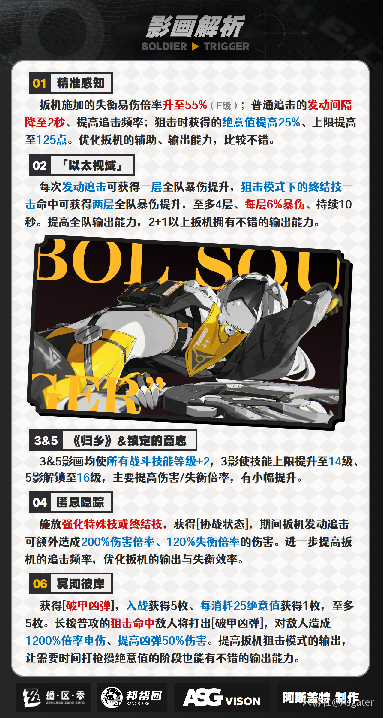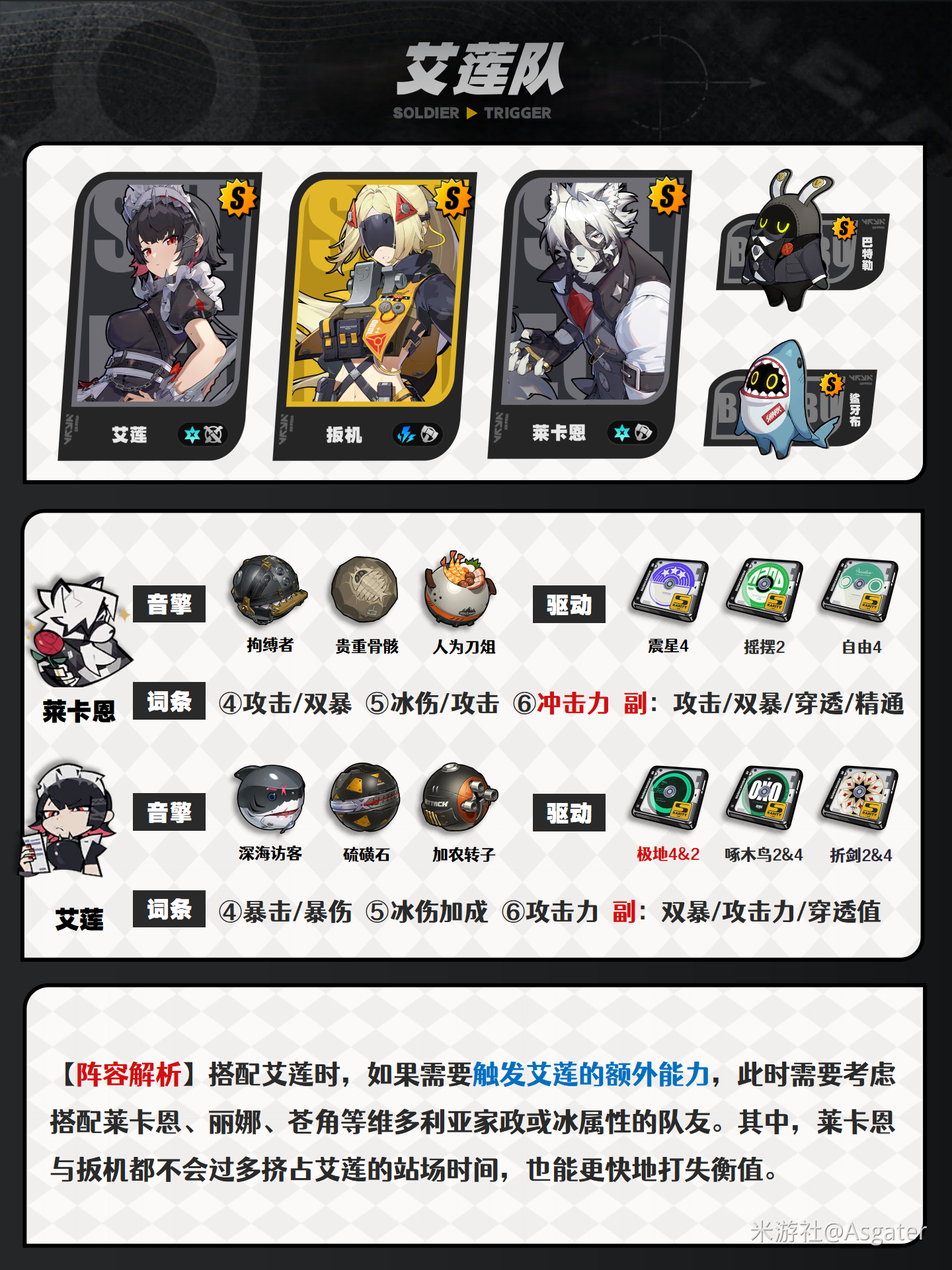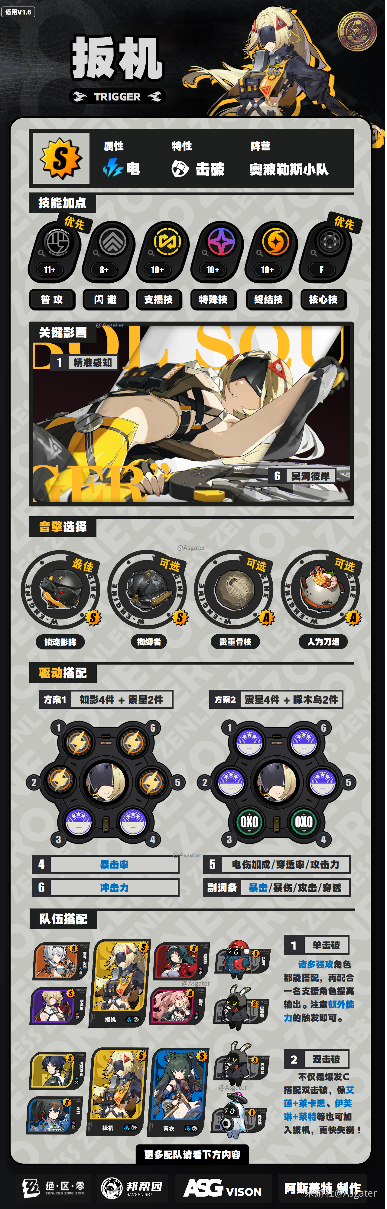 ① 嘉音能提高全队攻击力,让“安比+扳机”都有不错伤害——想要追求较高上限,扳机的输出不可忽视。