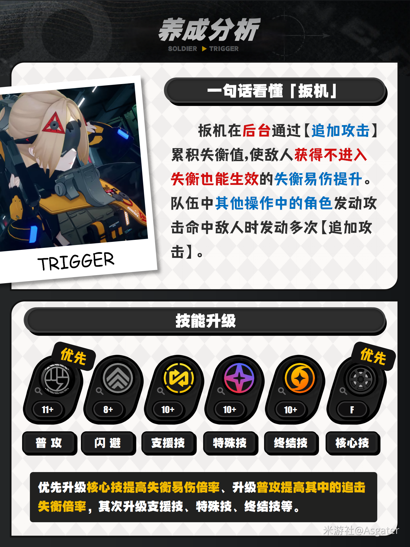 ② 扳机的追击既是普攻、也是追击,所以升级普攻。