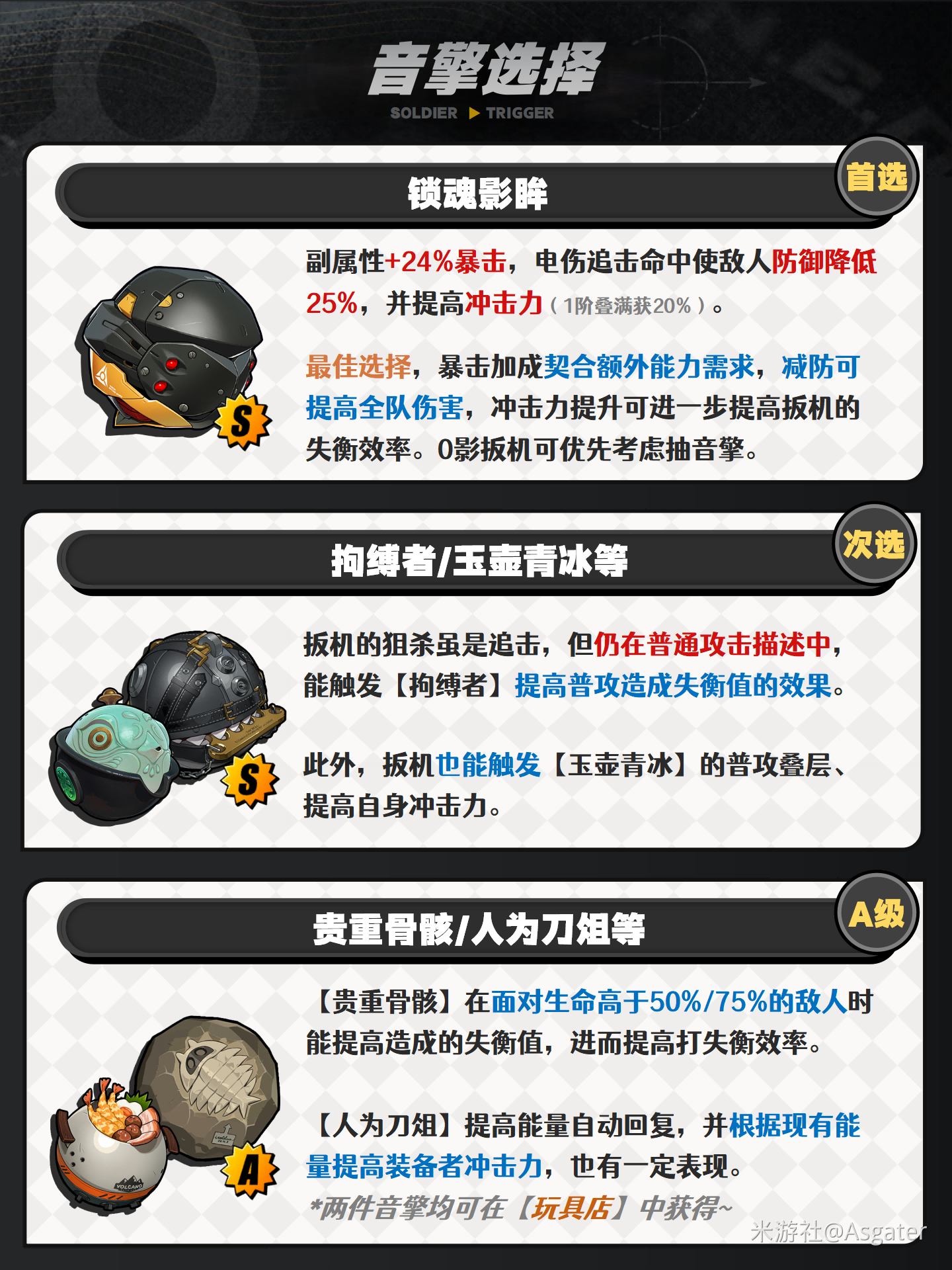 ① 虽然扳机堆暴击可提高自身伤害、追击造成的失衡值,但上述可选的击破音擎也具有提高冲击力或造成的失衡值提升的效果。