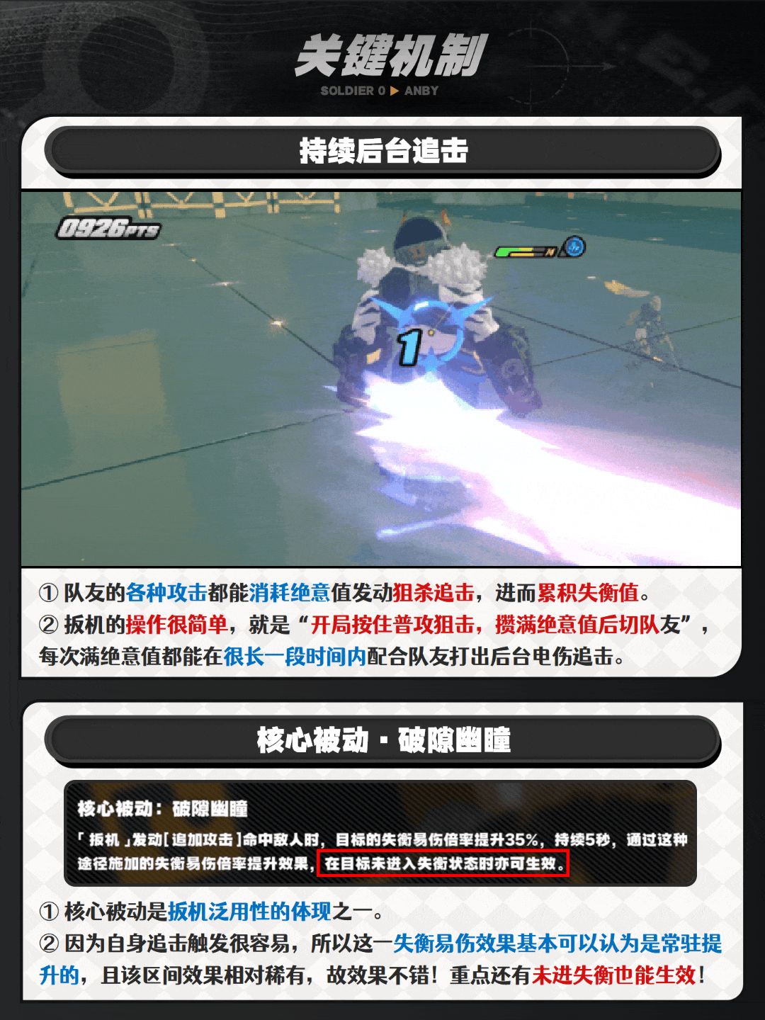 ① 扳机的追击也属于普攻,能获得【拘缚者】的失衡值提升。