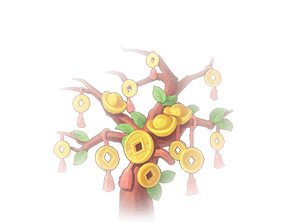 背景故事:三界奇树,树枝上挂满金钱,摇一摇便会有财宝掉落,是财富的象征。