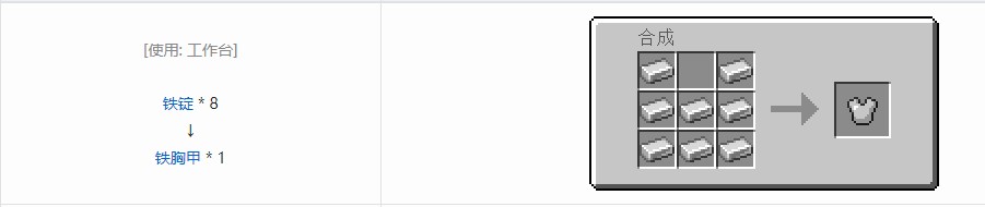 铁胸甲拥有6点盔甲值,通过铁锭合成,也可以通过击杀穿戴铁胸甲的僵尸获得。