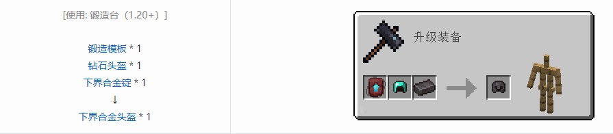 盾牌必须没有花纹,旗帜可用任何旗帜,合成后得到拥有旗帜花纹的满耐久盾牌