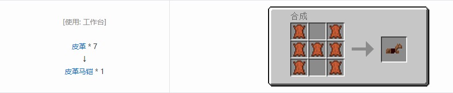 不同于其他几种马铠的获得方式,皮革马铠只能由皮革合成。