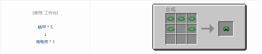 海龟壳(Turtle Shell)是一种酿造原材料,用于酿造神龟药水,也可作为头盔使用,戴上它的玩家会获得 10 秒的水下呼吸状态效果,由鳞甲合成。