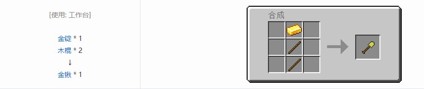 用金锭做成的锹,用来快速破坏草方块、泥土、沙子等方块。