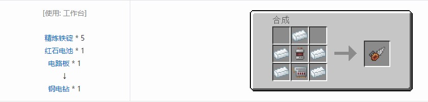 钢电钻是科技复兴(TechReborn)中的基础钻头。