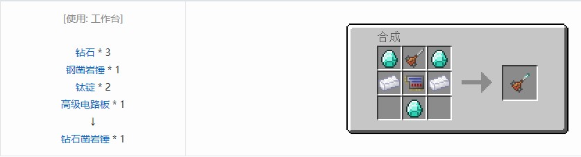 高级凿岩锤(在1.16以上名称为工业凿岩锤)是科技复兴中的顶级凿岩锤。