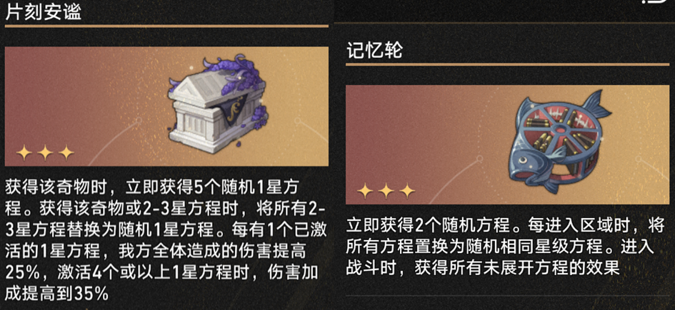 两个提供【奇遇】区域的奇物可以让你比较稳定地进入【奇遇】层,获取大量局内资源;