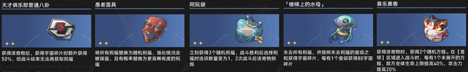 从1.0版本开服的【模拟宇宙】就开始陪伴我们的【福灵胶】可以将你下一次打怪获取的祝福升级为三星,就是不要在首领层前拿;