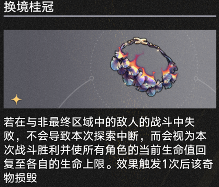 一星唯一真神【换境桂冠】,可以在第二层boss差点祝福解锁不了关键方程导致打不过的时候帮你解决问题。
