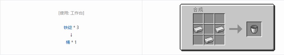 可以用于装液体或者鱼。桶只可堆叠16个,且在装液体之后不可堆叠。