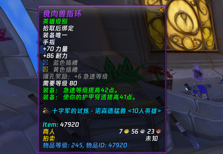 【食肉兽指环】和25人普通TOC的252【暴戾指环】各有优劣,但是25人普通TOC老一现在根本不可能有人打,所以这个戒指就是当前的最佳选择。