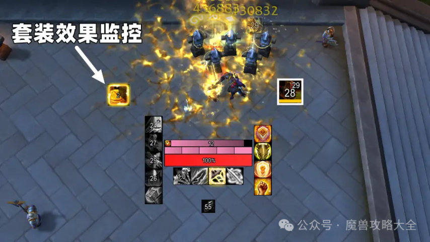 当惩戒骑4件套效果触发时,会有提示音。这个时候大家就施放[神圣风暴]或[最终审判]就行了。