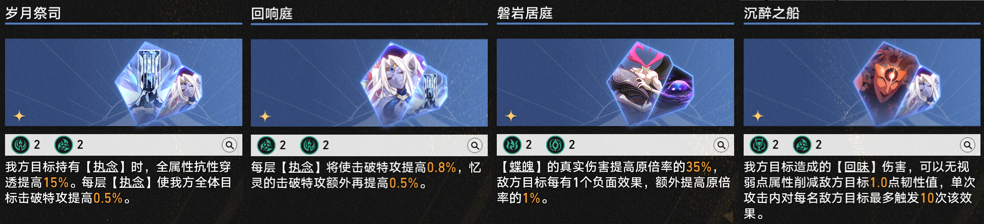 【阴谋论者】则提供通用减防,【共死者】提供击破特攻加成——都有一定作用,但总体效果有限。