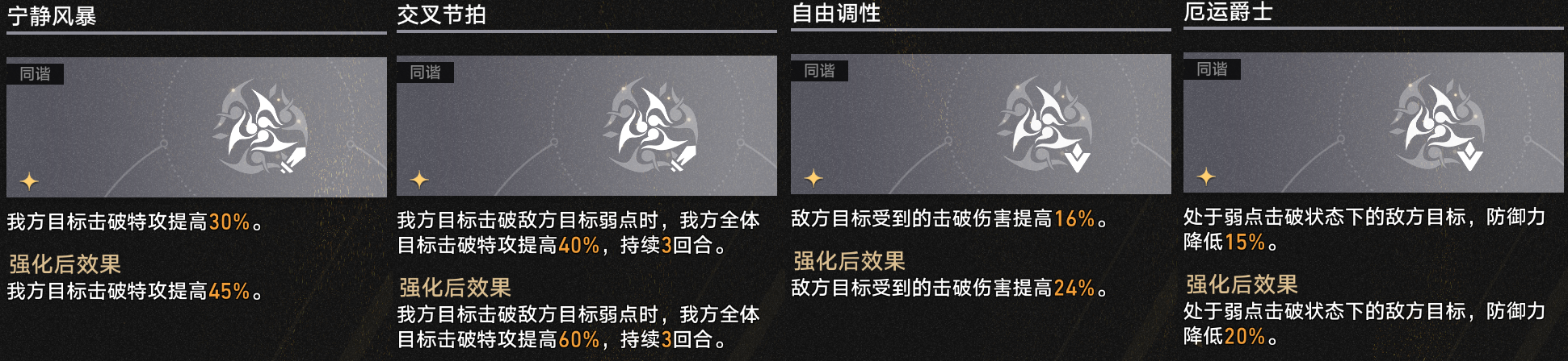 剩下的一星增伤方程则主要提供击破特攻属性加成和【蝶魄】倍率加成。