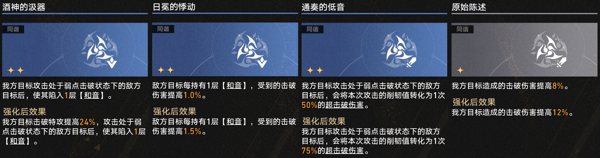 【同谐】的祝福可以有效提升我方超击破伤害输出,主打一个积少成多。