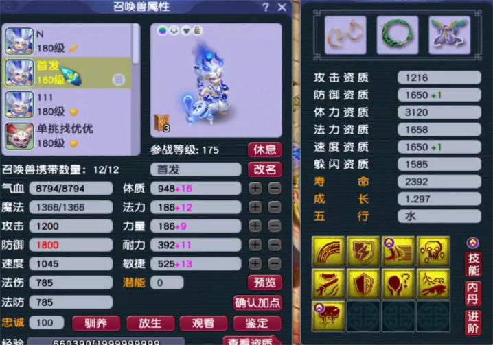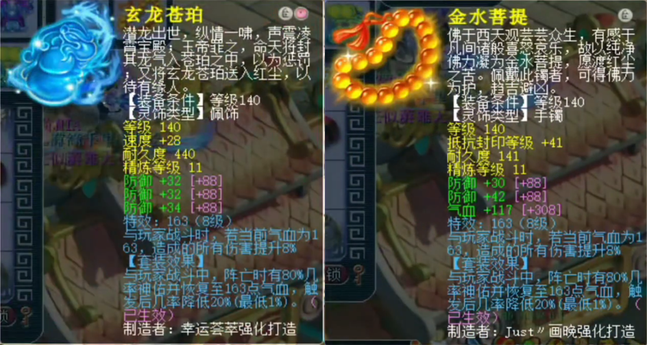英雄少侠的后排灵饰选择了“1气血5防御”的属性组合。