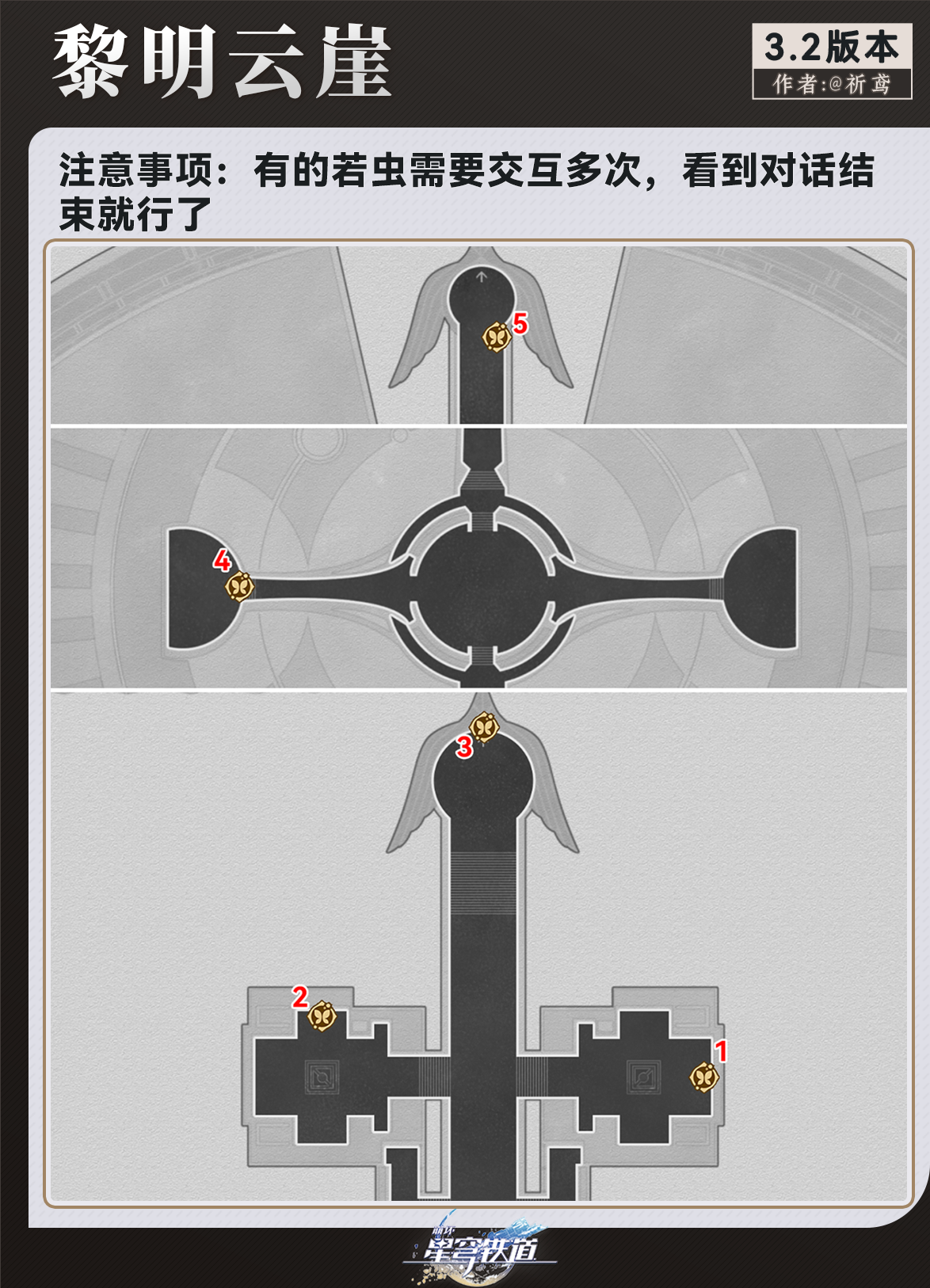 就在最近崩坏星穹铁道终于上线了3.2版本给我们带来新冒险,这次版本更新还上线了许多新内容,有新遗器,新地图,新角色,还有新地图宝箱,那么有小伙伴好奇半神议院黎明云崖若虫在哪,下面就来告诉大家。 崩坏星穹铁道半神议院黎明云崖若虫收集攻略 注意事项: (1)共10只,有的若虫需要交互多次,看到对话结束就行了 若虫点位一览 若虫实机点位 本文内容来源于互联网,如有侵权请联系删除。