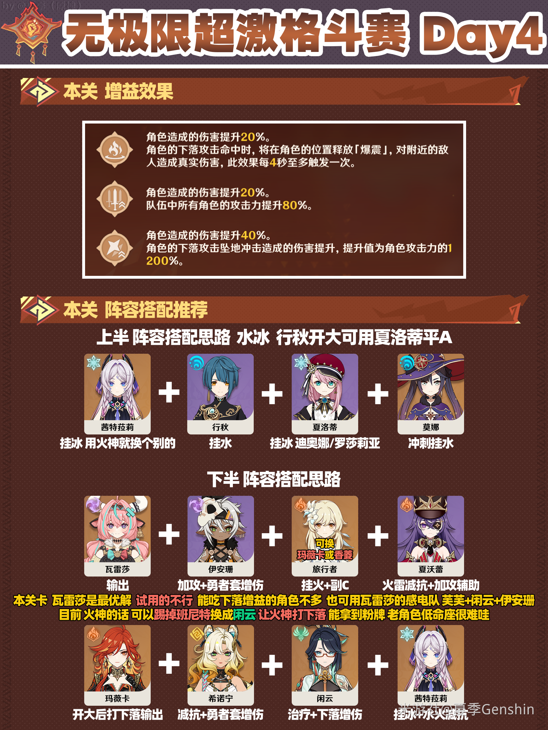 就在最近原神上线了5.5版本,本次版本更新上线了许多新内容,有新剧情,还有新的挑战,就在最近原神更新了新活动无极限超激格斗赛,那么有不少小伙伴好奇无极限超激格斗赛第四天怎么打,下面就来告诉大家。 原神无极限超激格斗赛第四关攻略 无极限超激格斗赛的活动攻略,有相应配队的拿满奖励是不难的,如只想拿原石奖励,可以选择困难模式挑战。 【无极限超激格斗赛 第四关】 本文内容来源于互联网,如有侵权请联系删除。