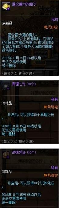 DNF黄金之沙神秘之曈的活动中玩家获得了眼瞳之后可以使用不同的组合方式来进行合成,不同的合成方法可以合成出不同的真理之光礼盒,那么具体怎么样呢?下面带来dnf神秘之瞳活合成公式介绍,一起来看看吧。
