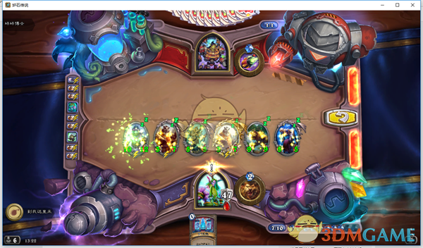 2.鳞皮兽贴着火舌下,然后用一张瓦力攻击对面随从,再将大地之力和石化武器加给另一个瓦力用来解掉对面随从使水晶复原,最后治疗波加鱼人奶脸。