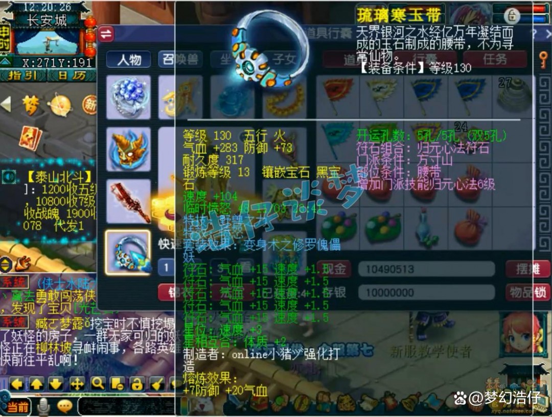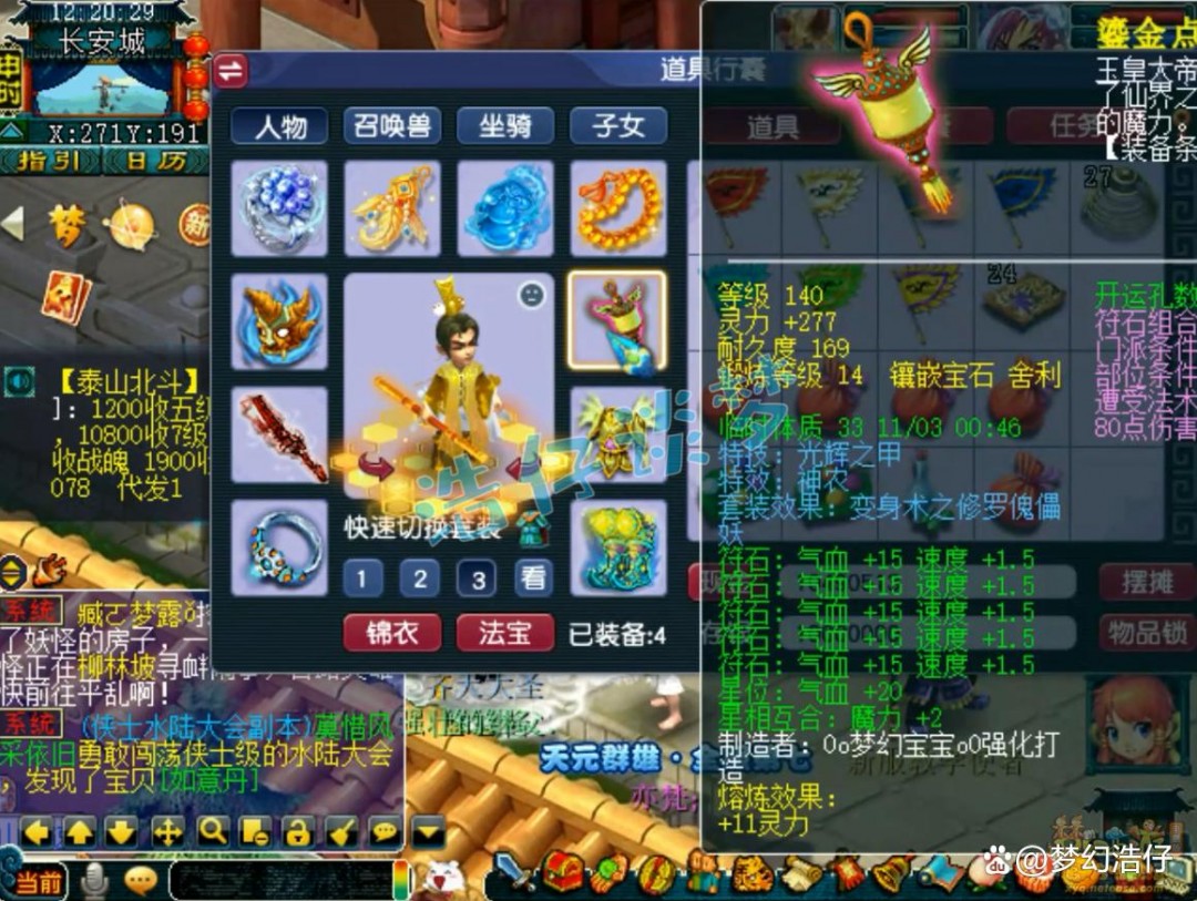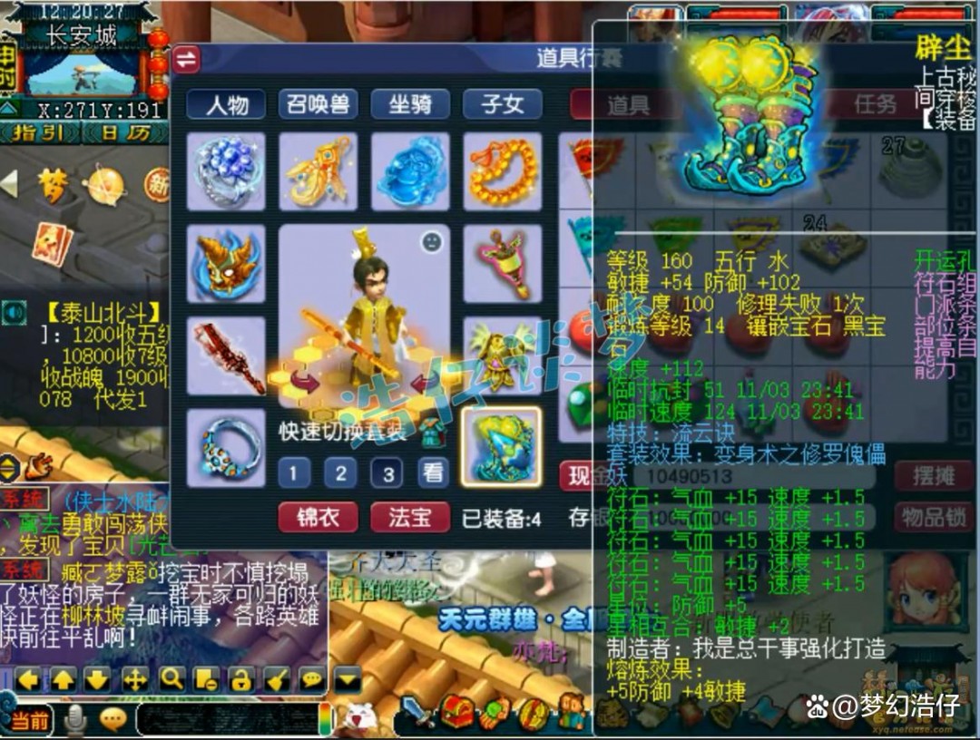 戒指和耳饰下排都是双速度一封印,佩饰和手镯下排都是双气血一防御,全部打了9锻星辉石,特效6级健步如飞!