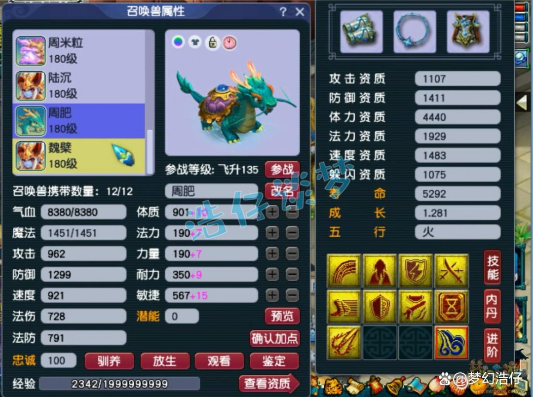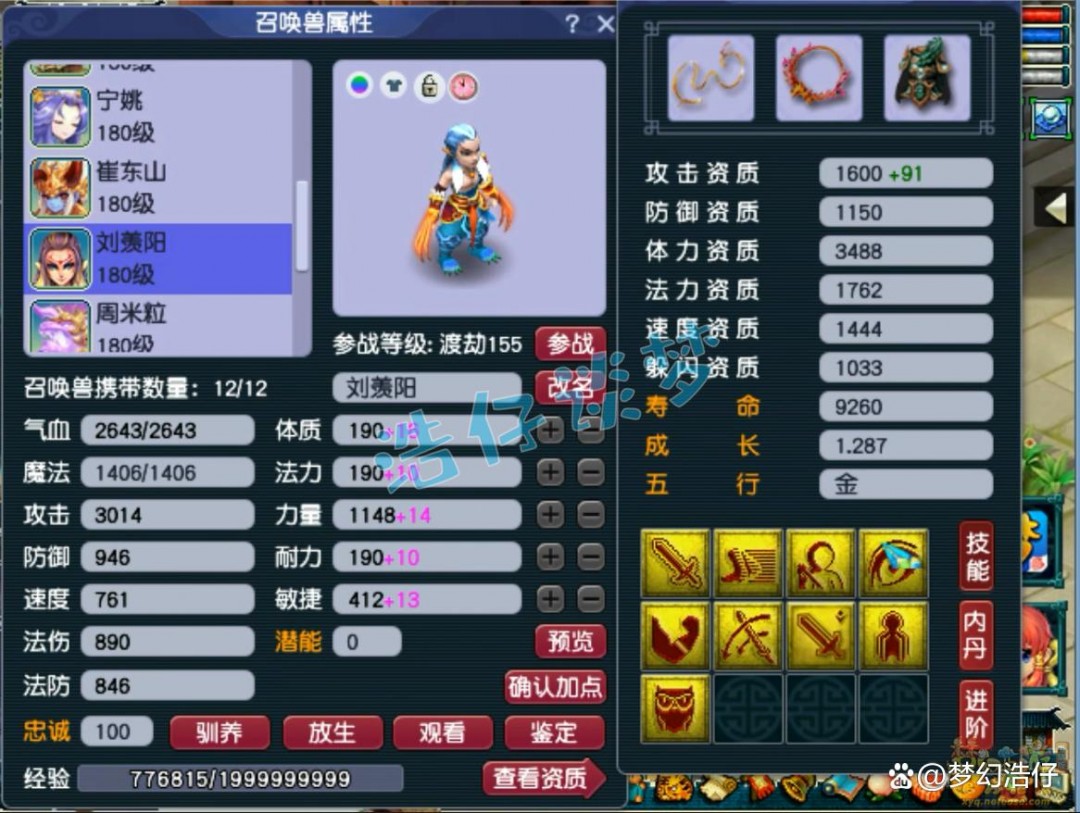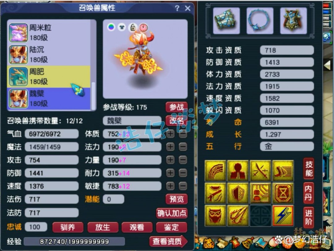 10技能耐攻壁垒童子,双资都达到了1650以上,而且速度资质也很高,很完美!