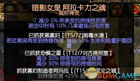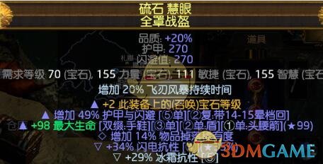 其他位置的装备尽量选择生命 抗性的黄装就可以了长老珠宝 首推 愤怒期间获得25%物理伤害的额外火焰伤害>火焰穿透15%