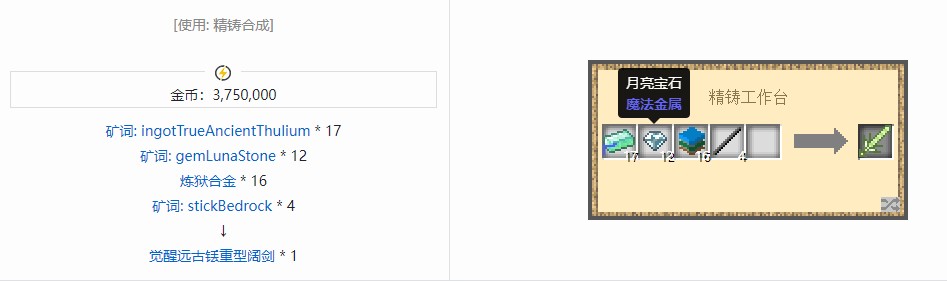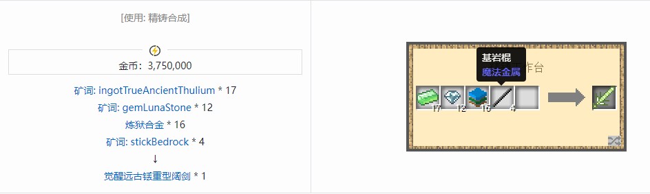 我的世界魔法金属模组剑合成方法