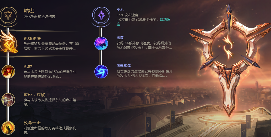 风暴聚集:持续性的AD加成,后期无敌的重要保障,一般AD位通用的这个符文选择。