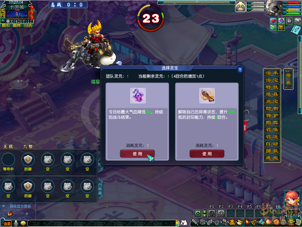 以上图为例,团队灵元1点,个人灵元2点,玩家可以使用3点灵元的灵宝。
