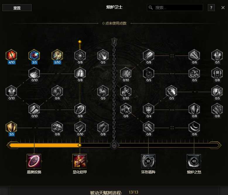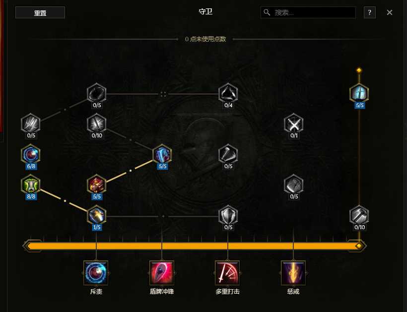 20级盾牌投掷 击中显化盔甲 触发宠物技能 横扫 不想要输出就去掉虚弱和物理抗性粉碎 点 右下角急速3点