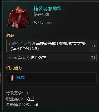 盾牌:玛加莎的面容。神躯墓穴 编织秘境专属掉落 合成词缀优先高格挡几率。格挡转持续减伤 尽量高roll