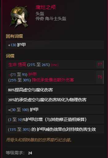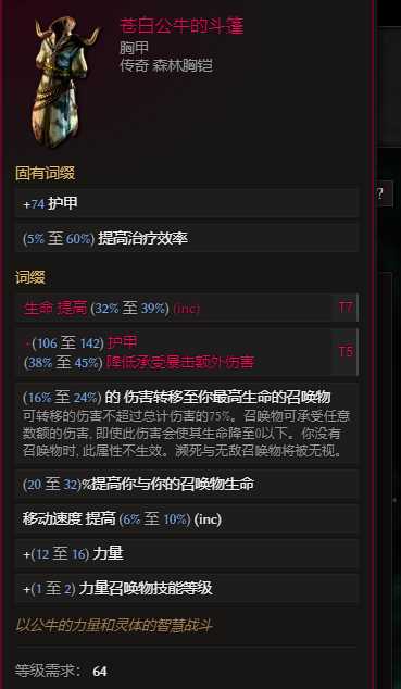 胸甲:苍白公牛的斗篷 世界掉落。属性完美 高减伤 合成词缀优先生命%