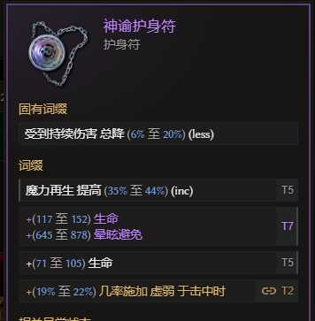护身符:防御就神谕基底,攻击就碧玉护身符加点投掷速度。词缀保证生命即可 前缀有个魔力再生就行