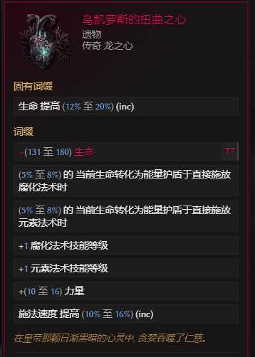 遗物 龙心 85骨龙专属掉落 合成词缀生命或者力量。超级阿波罗斯的遗物更好,常驻急速,有减伤和免疫迟缓。