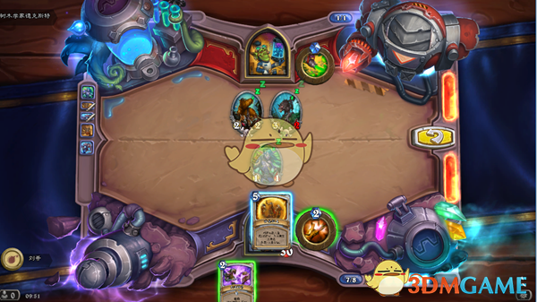 8.先转刀,然后涂毒、毒物学家、背刺恶毒铁匠,武器砍死亡之翼,伺机待发加剑刃乱舞,最后用给的四个硬币和刺骨解决自己场上的随从。