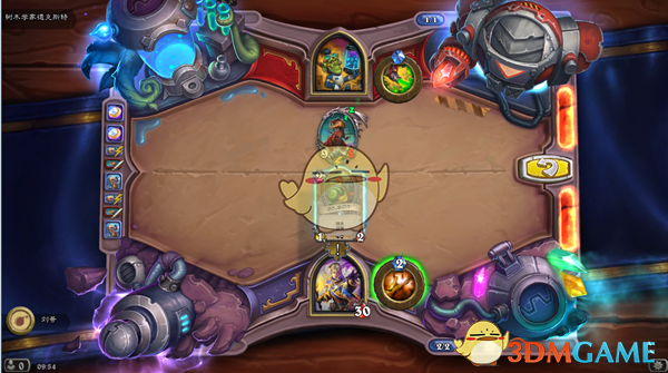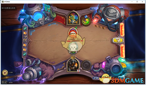 5.两张石牙野猪攻击对面随从,使用英雄技能增加两点护甲盾猛暴乱狂战士。