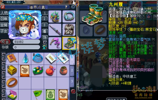 70级简易蜃气妖套鞋子,打了7锻黑宝石。