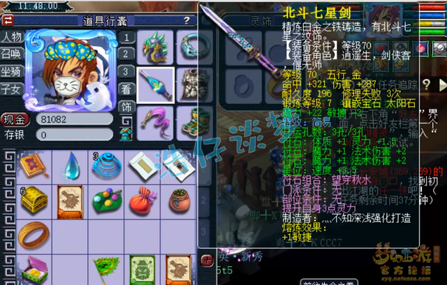 70级无级别蜃气妖套腰带,打了10锻光芒石。